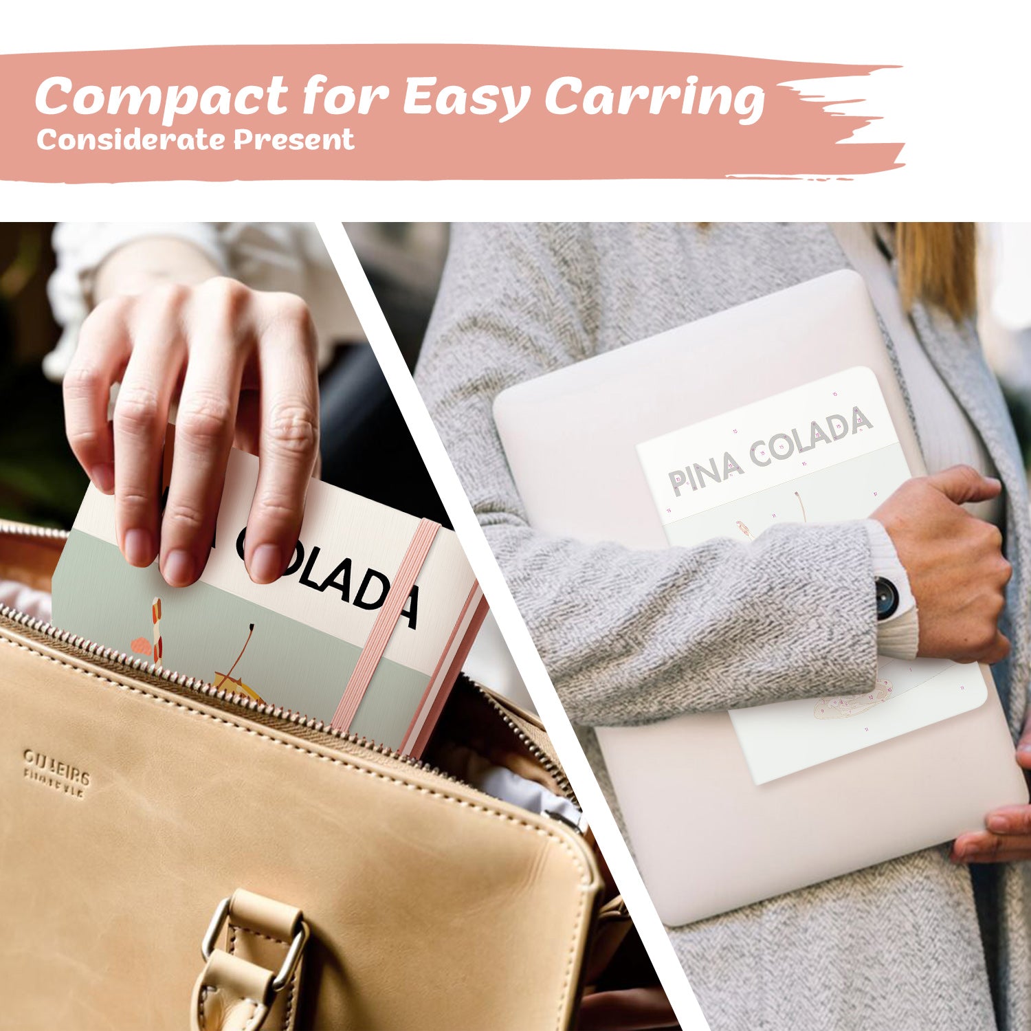This elegant A5 notebook comes with a soft-touch leather cover featuring a tropical Pina Colada illustration—ready for you to bring to life with your own hand-painted colors. Inside, you’ll find 160 high-quality pages, perfect for jotting down ideas, journaling, or sketching. The elastic closure keeps your notes neatly secured, making it both creative and practical—your daily dose of island inspiration!